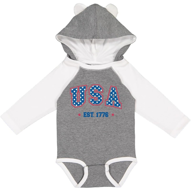 inktastic USA Est. 1776 Long Sleeve Creeper 18 Months Granite & White W Ears 45a95