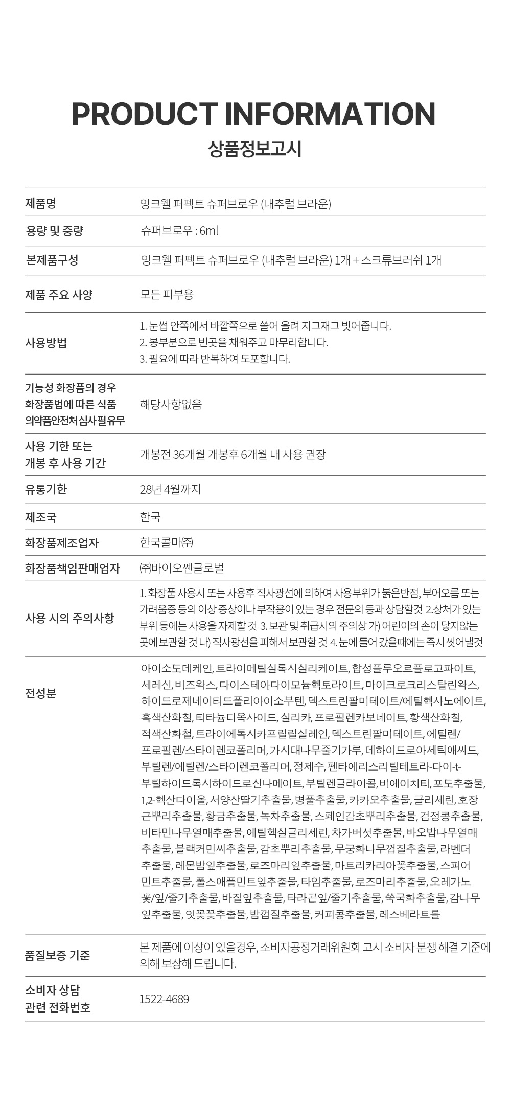 잉크웰 퍼펙트 슈퍼아이브로우 내츄럴브라운 6ml  1개  + 스크류 브러쉬 1개