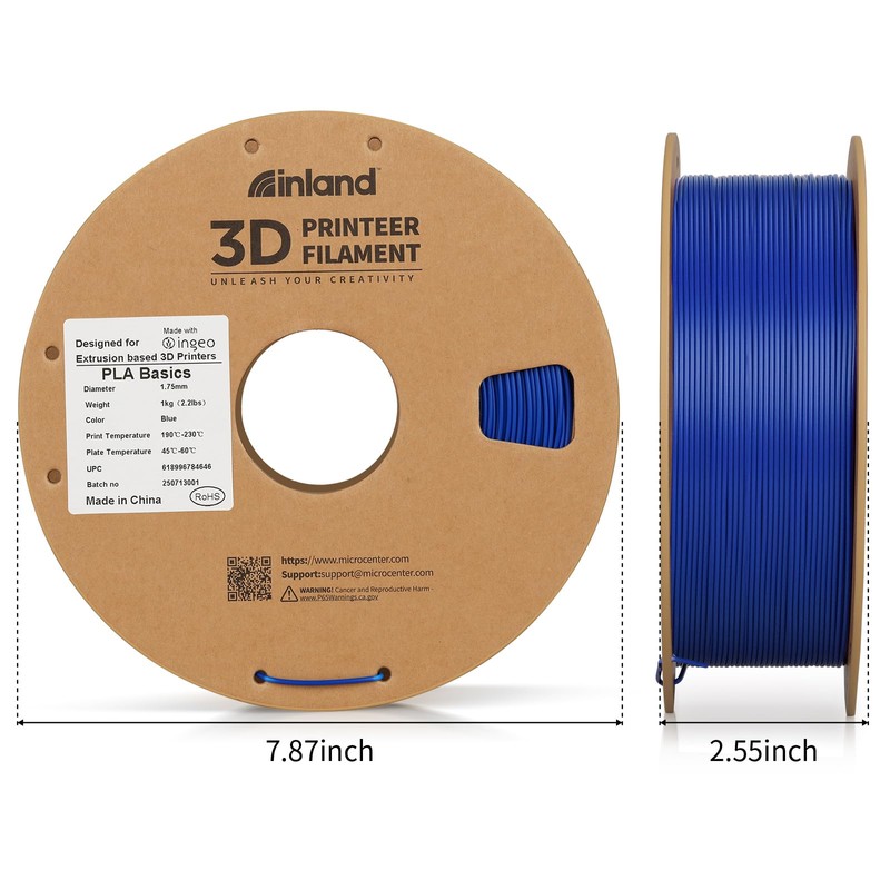 - PLA Basics 3D Printer Filament – Affordable Quality You Can Trust Inland PLA Basics is crafted for reliability and ease of use, making it perfect for rapid prototyping, everyday prints, and beginner projects. Designed for low-warp, odorless printing with a glossy surface finish—at a value price without sacrificing Micro Center quality.