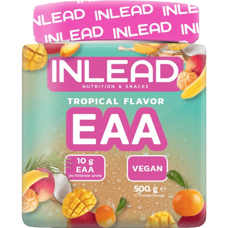INLEAD - EAA Pulver | 10.000 mg essentielle Aminosäuren pro Portion | Unterstützt Muskelschutz, Regeneration & Leistungsfähigkeit | Optimale Löslichkeit - 500g (500g, Tropical)