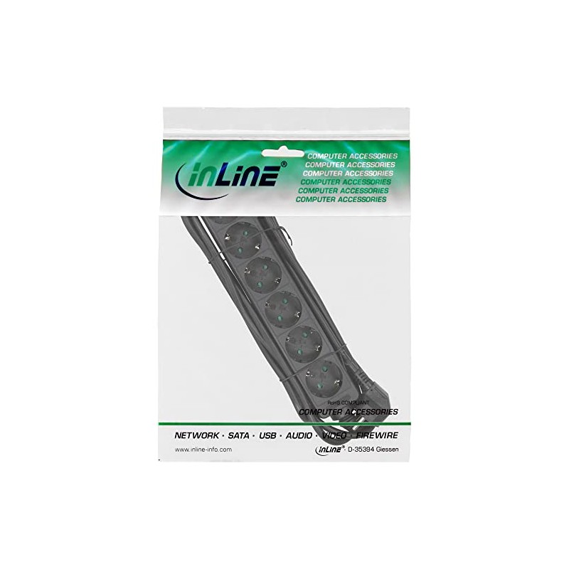 InLine® 16465 6AC Outlet 230 V 5 M Surge Protection – 6 AC Outlet Surge Protection (Black (S) (S), 3500 W, 5 m, Black, Plastic)