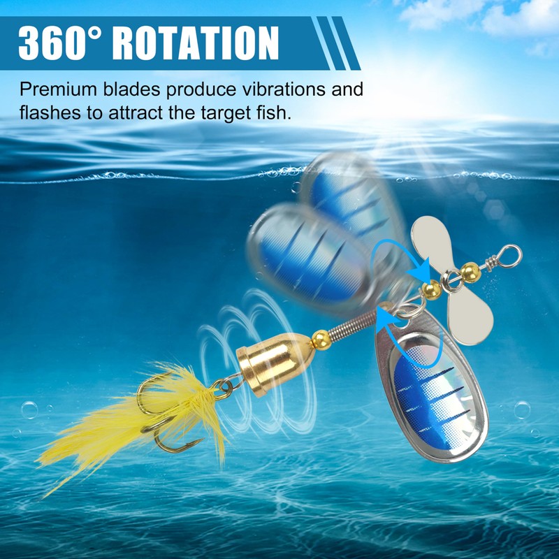 - Ultra-sharp Treble Hook: These spinner baits are equipped with ultra sharp hooks, which have high corrosion resistance and excellent piercing ability, leaving fish with nowhere to escape after biting the hooks.