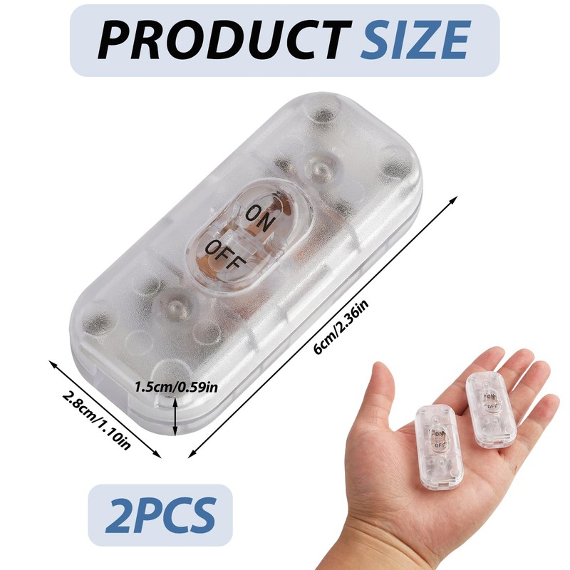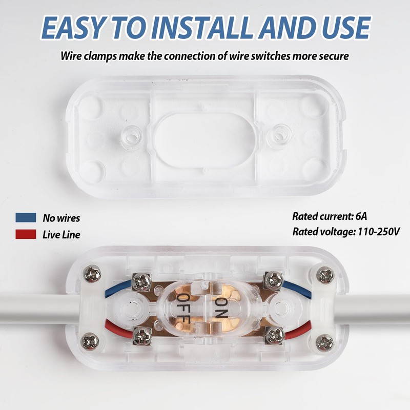 - Technical Specifications: This pack includes two transparent switches.Suitable for wires with an outer diameter less than 0.25". Each switch is rated at 250V and 6A, capable of handling typical household electrical demands.