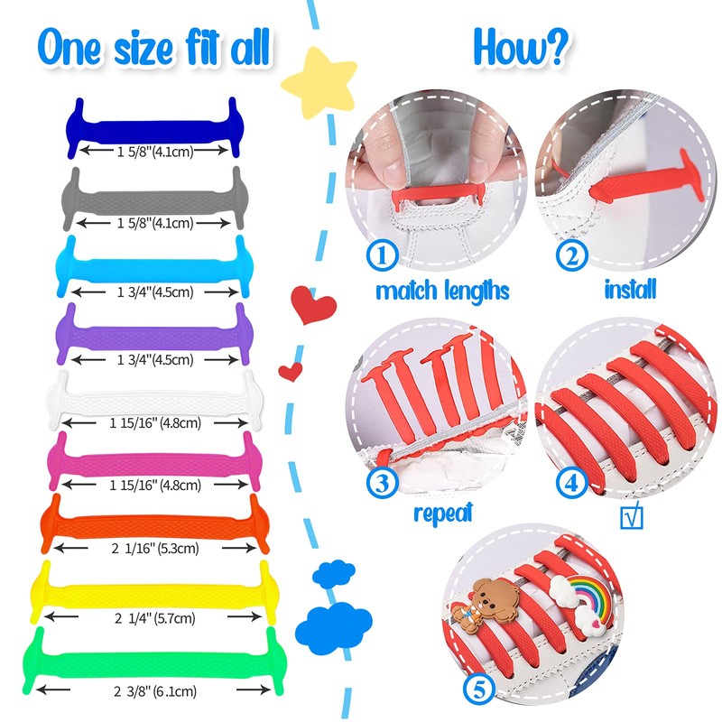 - Safe high-quality material – the set includes silicone laces and modern PVC pendants, which are environmentally friendly, waterproof, easy to clean and durable. Note: Not suitable for children under the age of 3