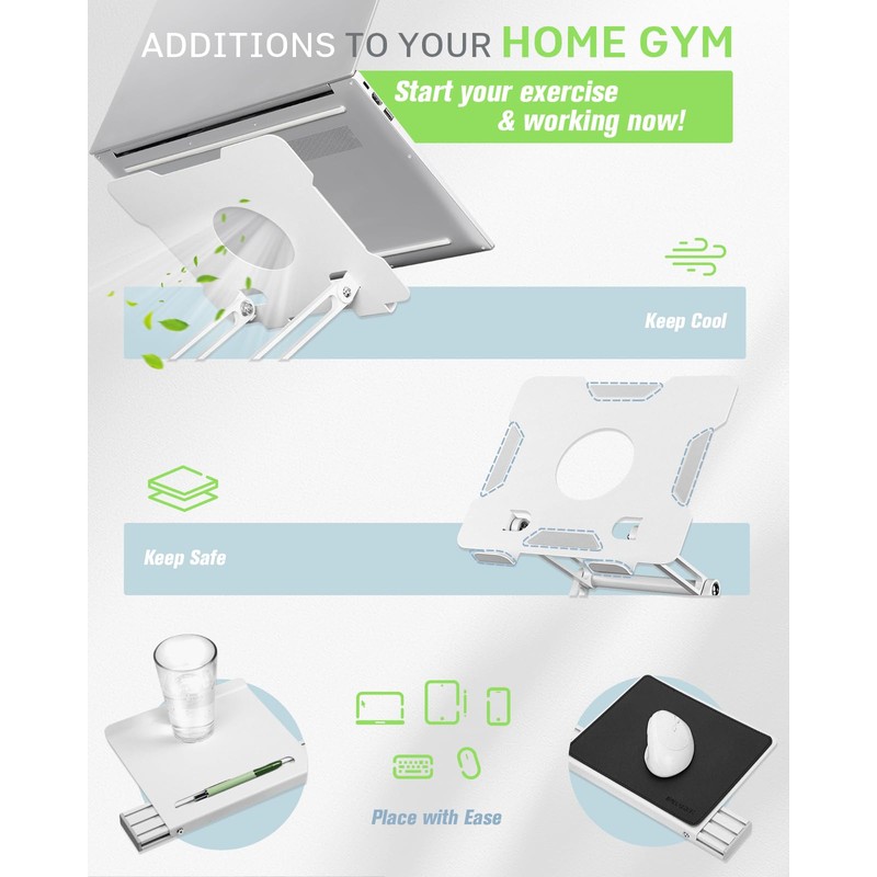 INMAKER Treadmill Desk Attachment, Universal Treadmill Laptop Holder Adjustble Height Width, Aluminum Laptop Stand for Treadmill with Tray White