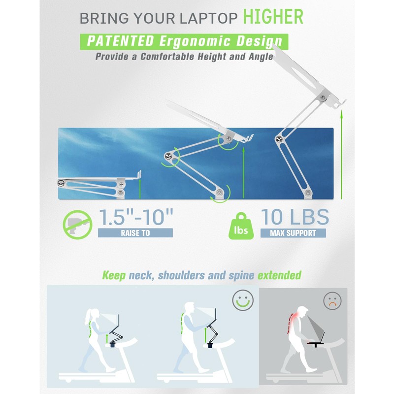 - Max Freedom for Walking Workstation: Adjustale height and angle for different working postures. INMAKER treadmill laptop holder keeps neck, shoulders and spine extended while on a online conference, mail writing or video watching etc.