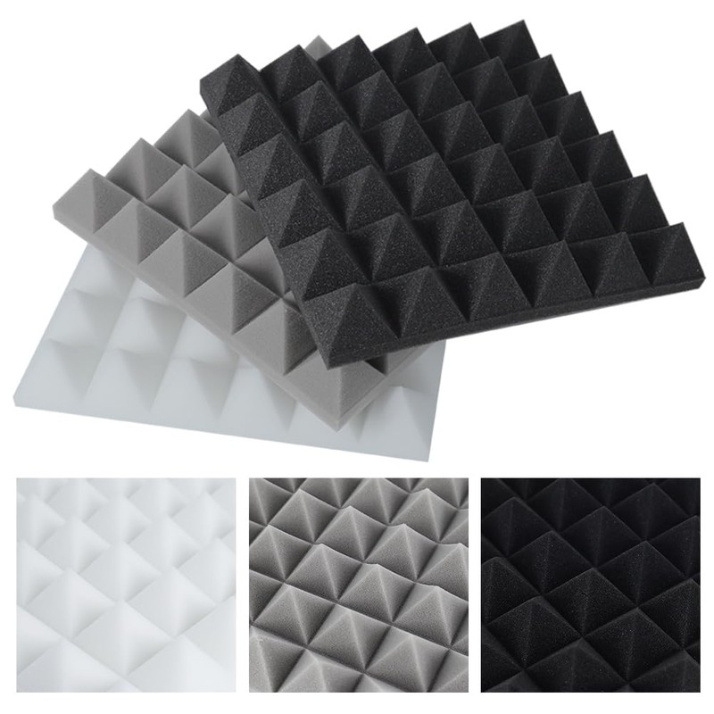 "Pyramid surface: absorbs the first reflection sound to improve sound clarity, clean sound field, while reducing the echo between the sidewalls to control the sound wave.High-density and fire retardant material would efficiently reduce noise, eco-friendly brings safe using experience.Easy to use: Very easy to fix to the walls with double sided tape. Also can cut the foam to any size & shape you need. Super lightweight to be moved around.Multiple usage: These sound proofing panels are perfect to add to any home office, recording studios,living room, home theaters or any similarly used room to remove a bunch of echo and improve the acoustics of the room.Kindly notice: Wash them really well after receiving, get as much of the water out and blow dry them one by one or wait 24-48 hours until fully expanded to normal shape. This helps them get that perfect shape. Make sure your walls are clean of dust and any other grime. If you do this they will stick on perfectly. Use double sided paper tape on top or the gel it comes with.Product specifications: Color: Black & WhiteMaterial: FoamProduct Size: 12 Pcak 5H×30W×30DcmProduct Weight: 400g"