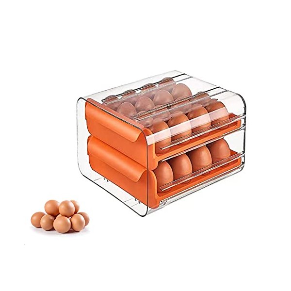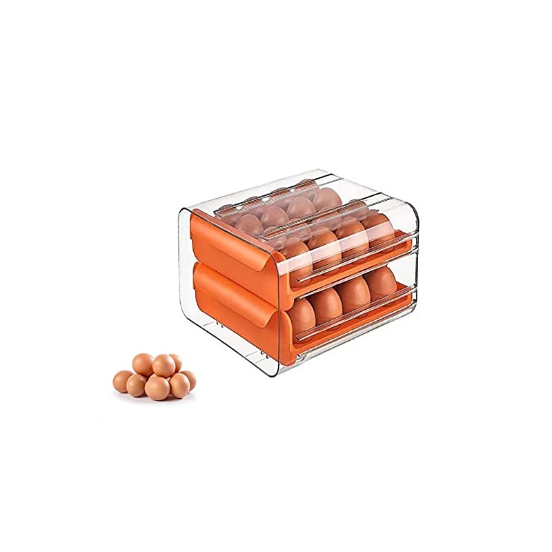 INMTIE Egg Storage Box Kitchen Storage Double Drawer Refrigerator Egg Box,Saving Space Stackable Multi-Layer Egg Storage Household Egg Fresh Storage Box (Orange)
