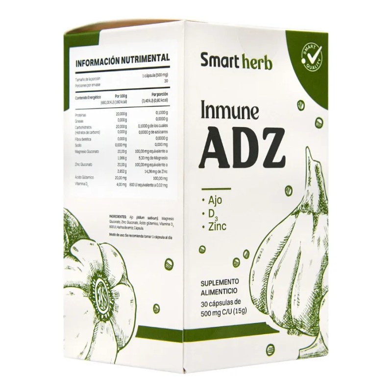 Inmune ADZ, Pack 2 Piezas (30 Cpsulas cu), Suplemento Alimenticio con Ajo, Vitamina D3 y Zinc para Fortalecer el Sistema Inmunolgico, SMART HERB