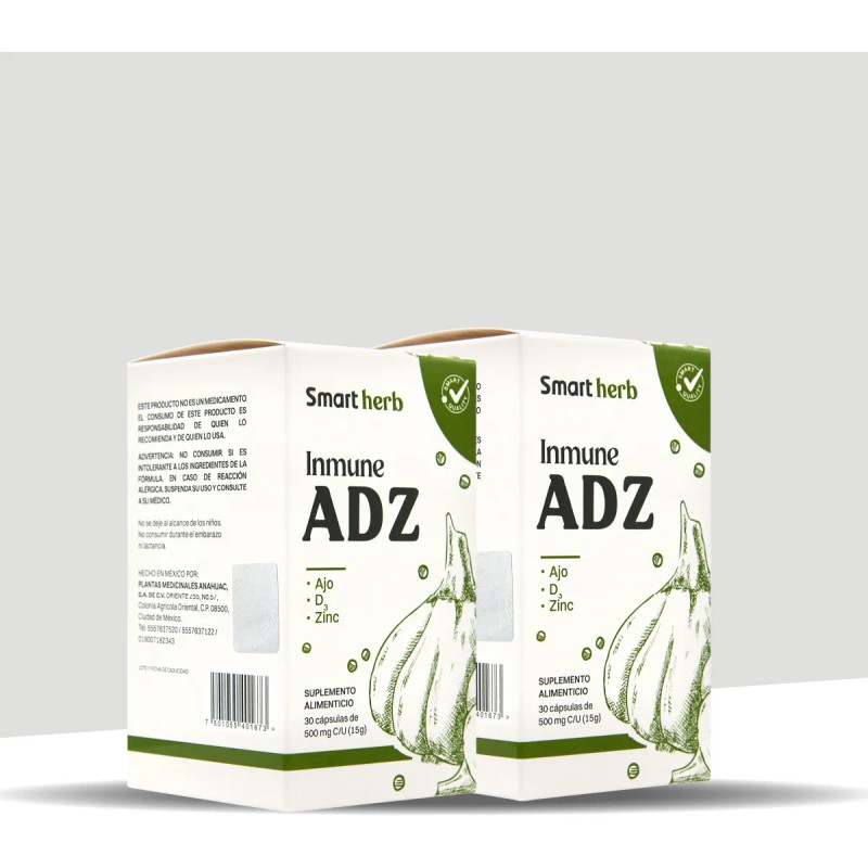 Inmune ADZ, Pack 2 Piezas (30 Cpsulas cu), Suplemento Alimenticio con Ajo, Vitamina D3 y Zinc para Fortalecer el Sistema Inmunolgico, SMART HERB