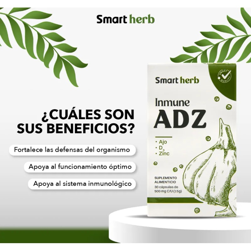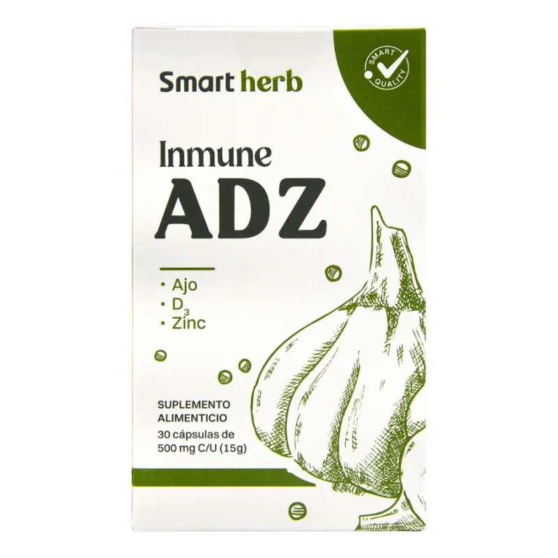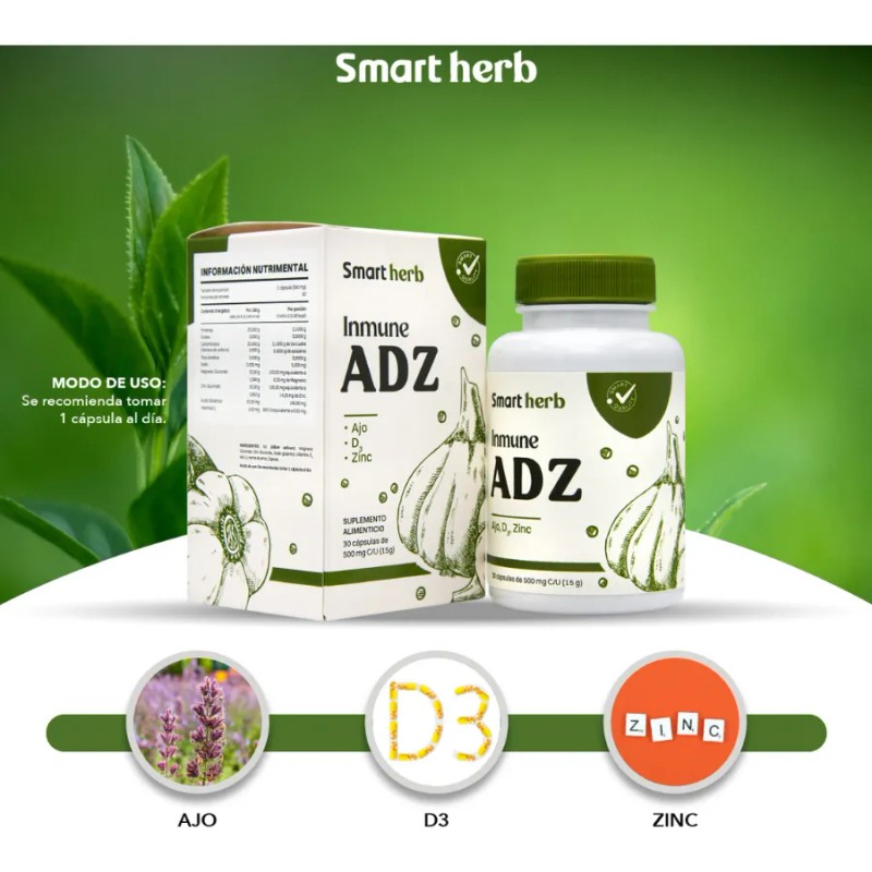 Smart Herb - Inmune ADZ, Pack 2 Piezas (30 Cápsulas c/u), Suplemento Alimenticio con Ajo, Vitamina D3 y Zinc para Fortalecer el Sistema Inmunológico, SMART HERB. ⭐ Calidad premium certificada con excelentes reseñas. Construcción robusta y atención al detalle. 🏆 Recomendado por expertos. Ideal para quienes buscan lo mejor en calidad y estilo. Producto auténtico con satisfacción total asegurada. ¡No te quedes sin el tuyo y aprovecha esta oportunidad única!