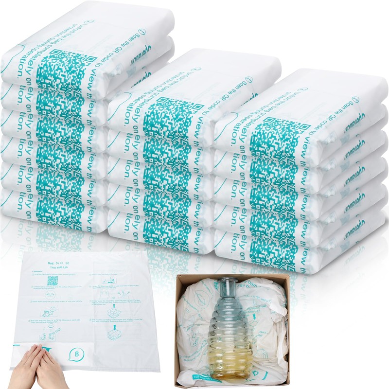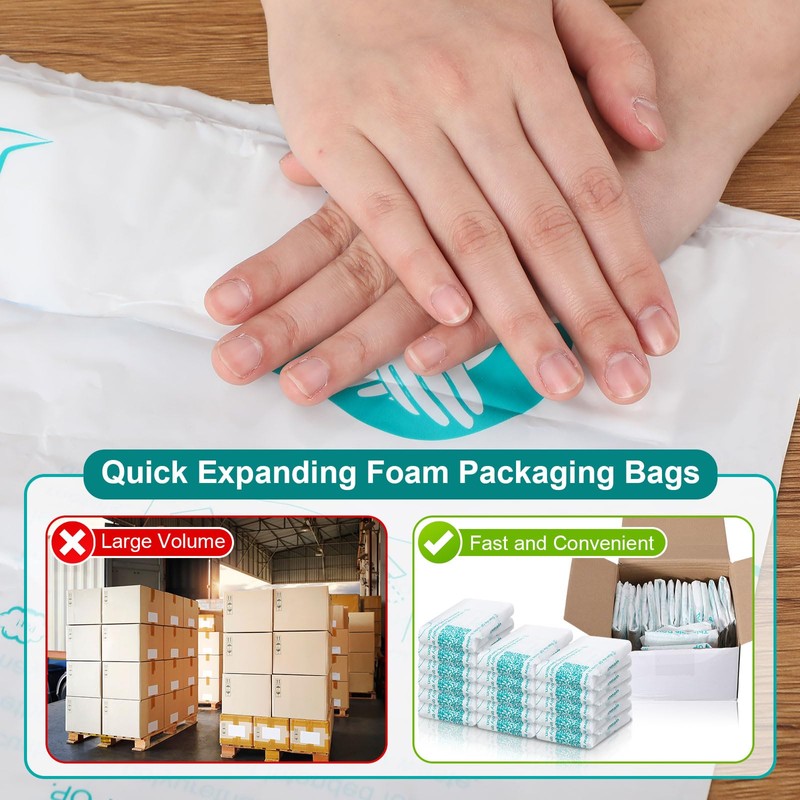 - Size Introductions: package contains 16 pieces 18"x18" quick expanding foam bags, these foam bags are recommended for use with an 10" x 12" x 8" box size; Compared with traditional wrap, our packing foam is small and easy to carry, does not take up space, and is convenient for storage