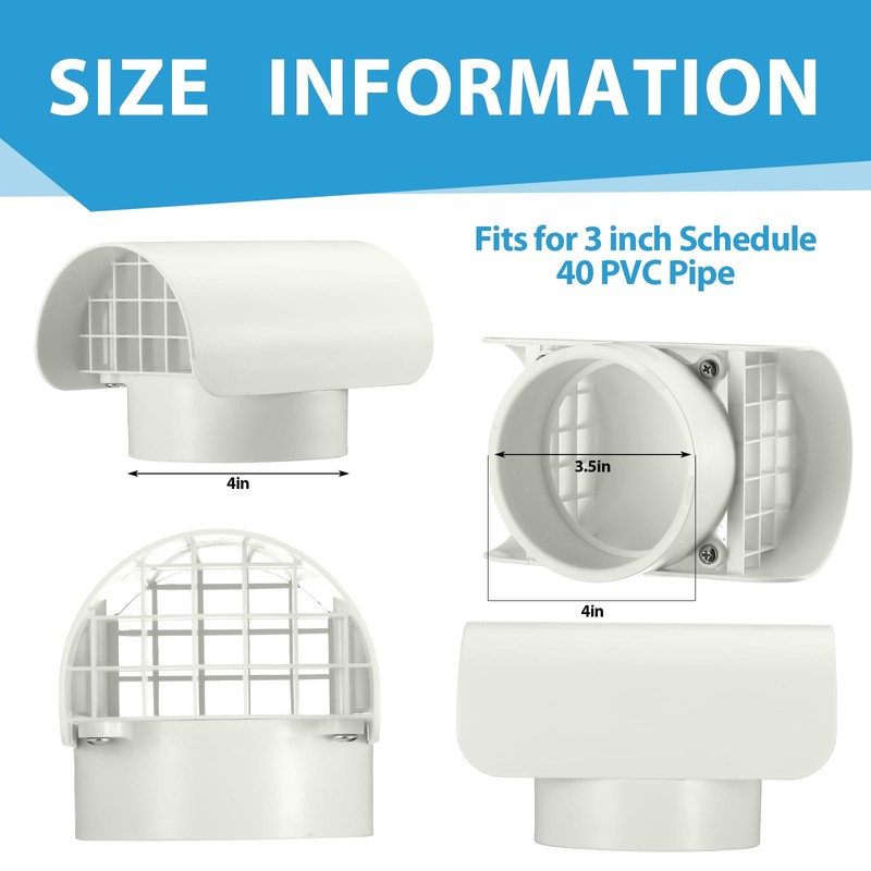 - Suitable Size: exhaust Pipe Cap Fan Pipe Cap is suitable for 3" PVC Schedule 40 Pipe, Schedule 40 PVC vent pipe has an outer diameter of 3 1/2 inches