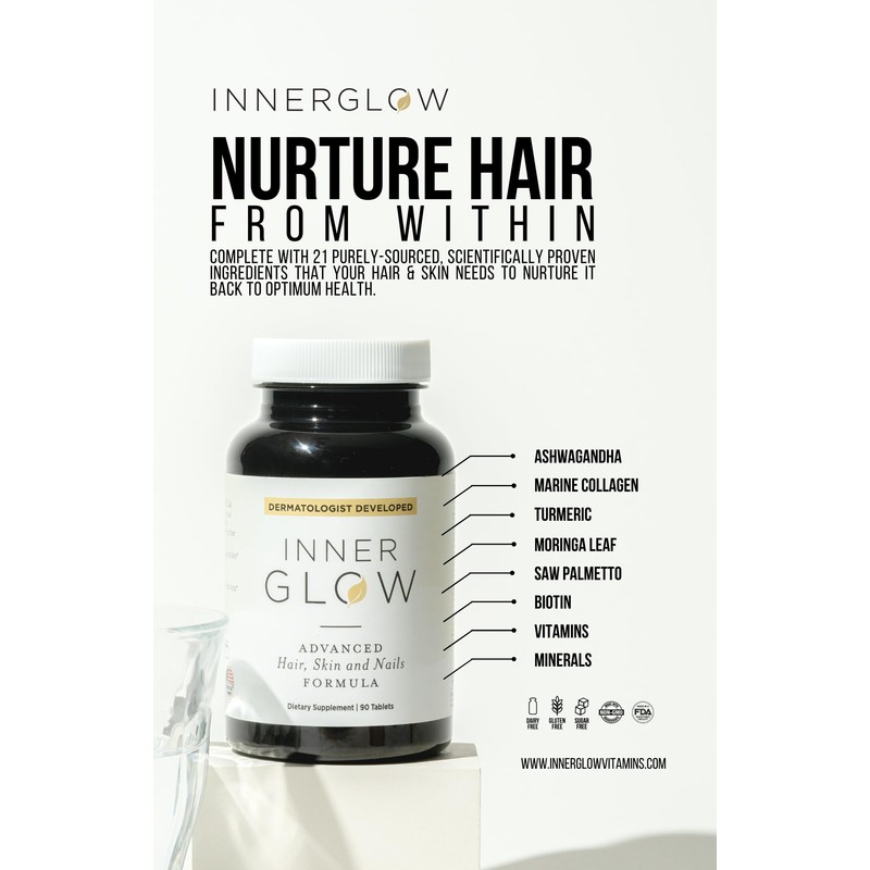 Inner Glow Advanced Hair, Skin & Nails Vitamins – Doctor-Developed Hair Suppl...