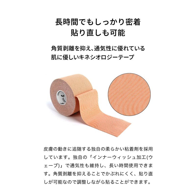 - Unique S-Shaped invitations (Wave) with adhesive, while maintaining superior breathability that allows you to attach the inna-uxissyu processing, the surface of the water and sweat resistant and water wrap material (water repellent material) with a tape to a high standard kinesiorozi-te-pu.