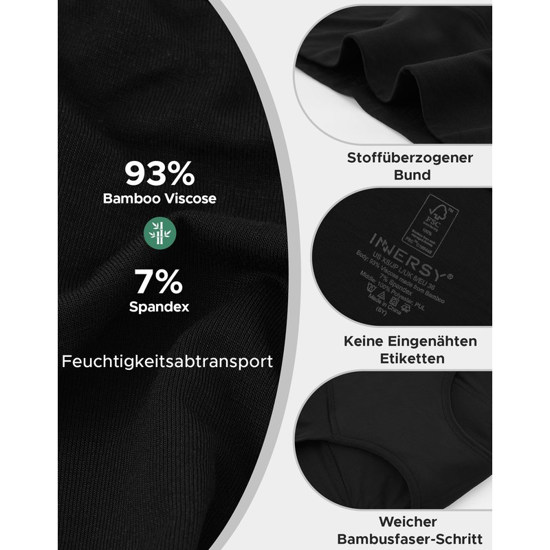 INNERSY Perioden Unterwäsche Starke Blutung Bambus Menstruationsunterwäsche Hohe Taille 3er Pack (42, 3 Schwarz)