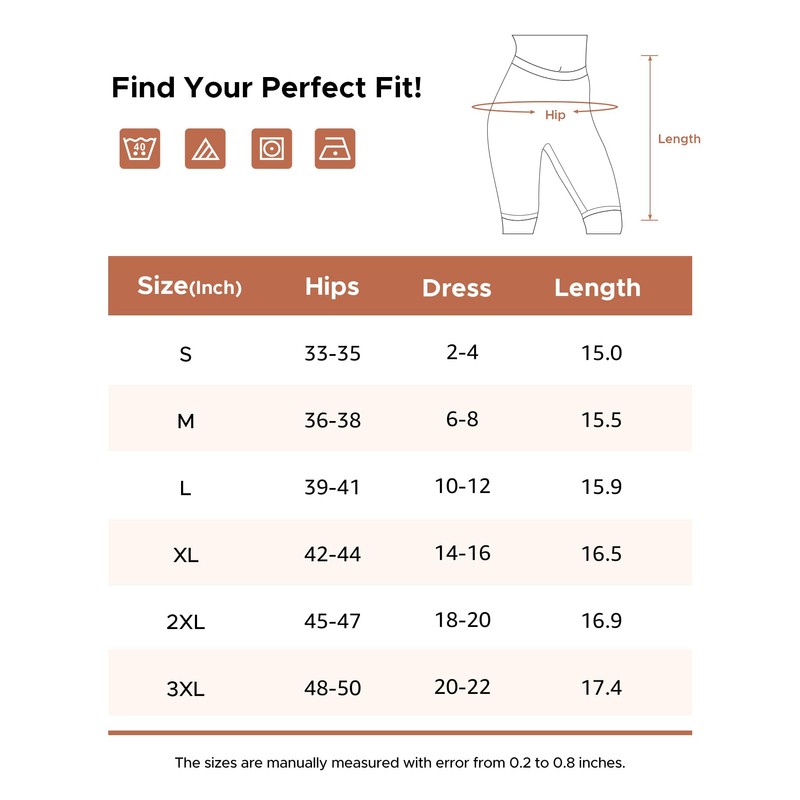 - NO THIGH CHAFING SLIP SHORTS: These nylon slip shorts are perfect to help prevent thigh chafing. The inseam length is 17cm/6.7''. These are made of two pieces joined together: the body and the crotch
