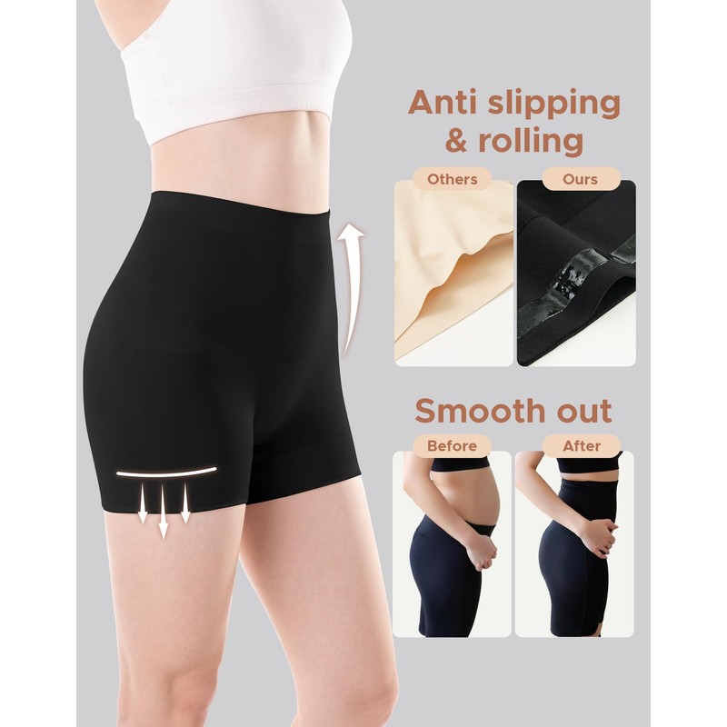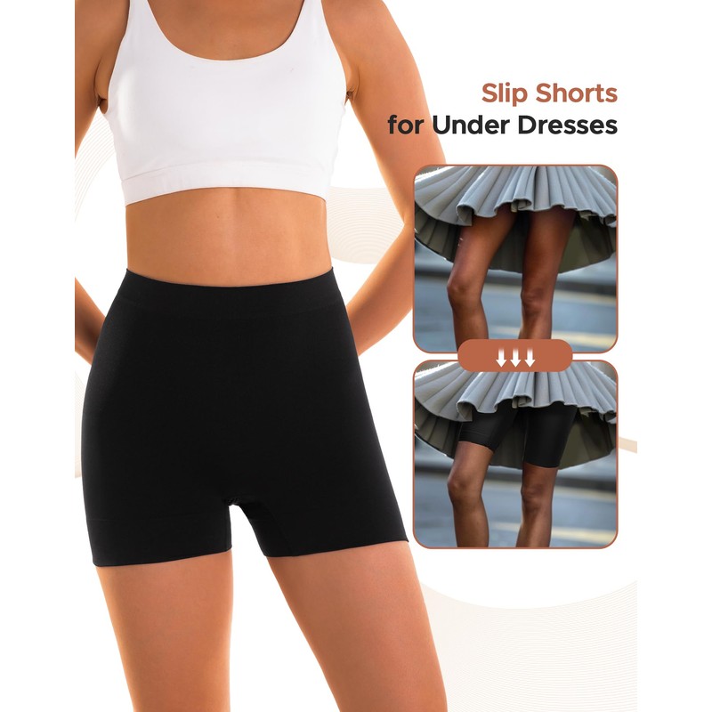 - 2.95" Inseam Shorts: Anti-chafing slip shorts for women under dress help avoid panty lines and offer a line-free look under clothes. The smooth fabric makes your tummy look flat, yet it's not binding or digging into your skin. The full coverage and butt-hugging fit provide a high level of security