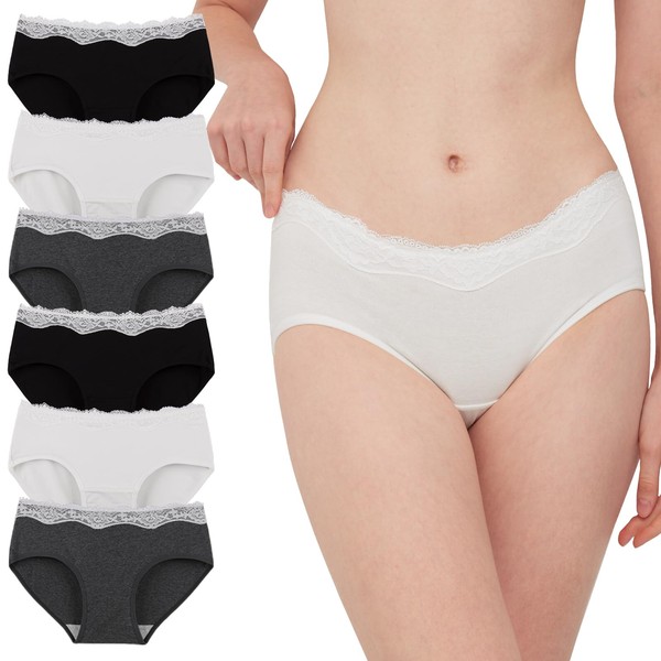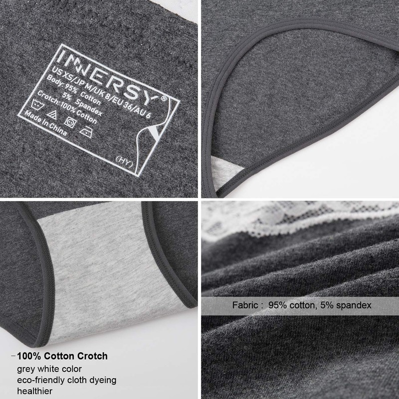 INNERSY Womens Lace Underwear Cotton Hipster Panties Regular & Plus Size 6-Pack(XL,Black Grey White)