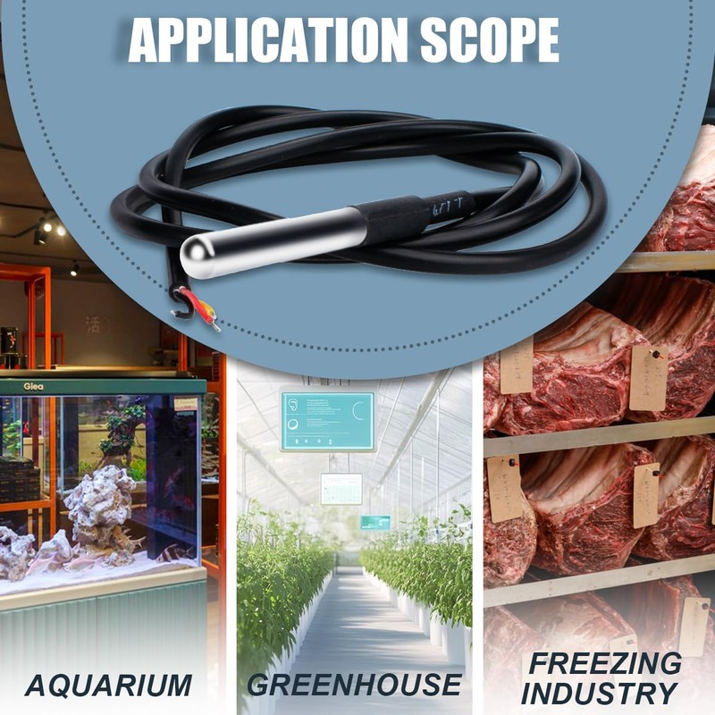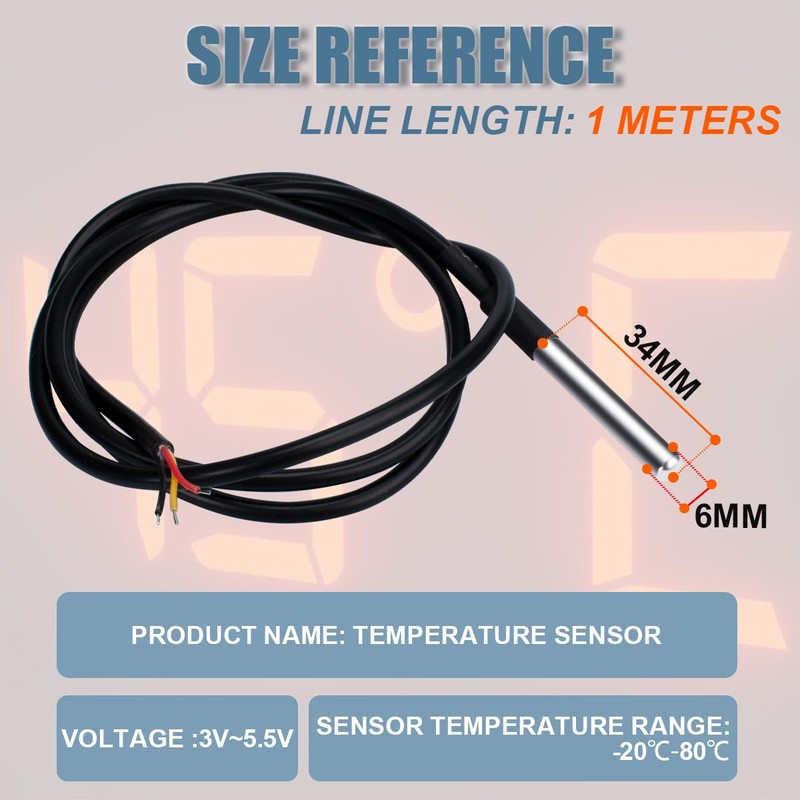 Innfeeltech 4 Pcs Digital Stainless Steel Temperature Sensor, Waterproof Temperature Sensor 1M