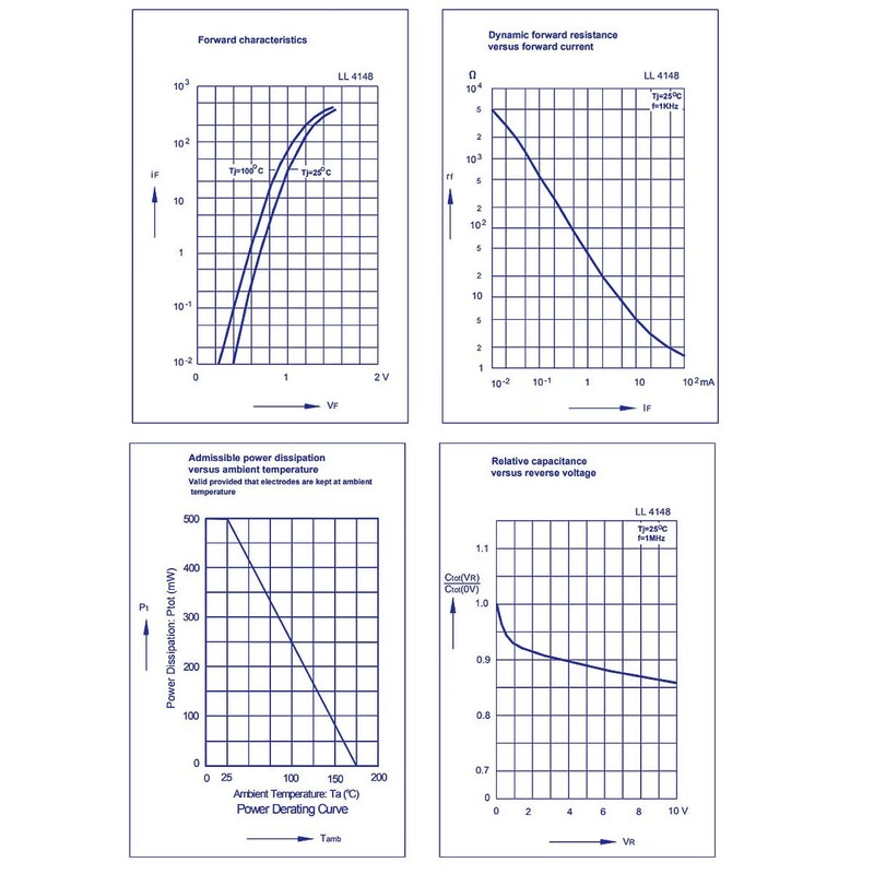- Model: LL4148, Maxixum repetitive peak reverse voltage: 100 V, forward current: 0.2 A