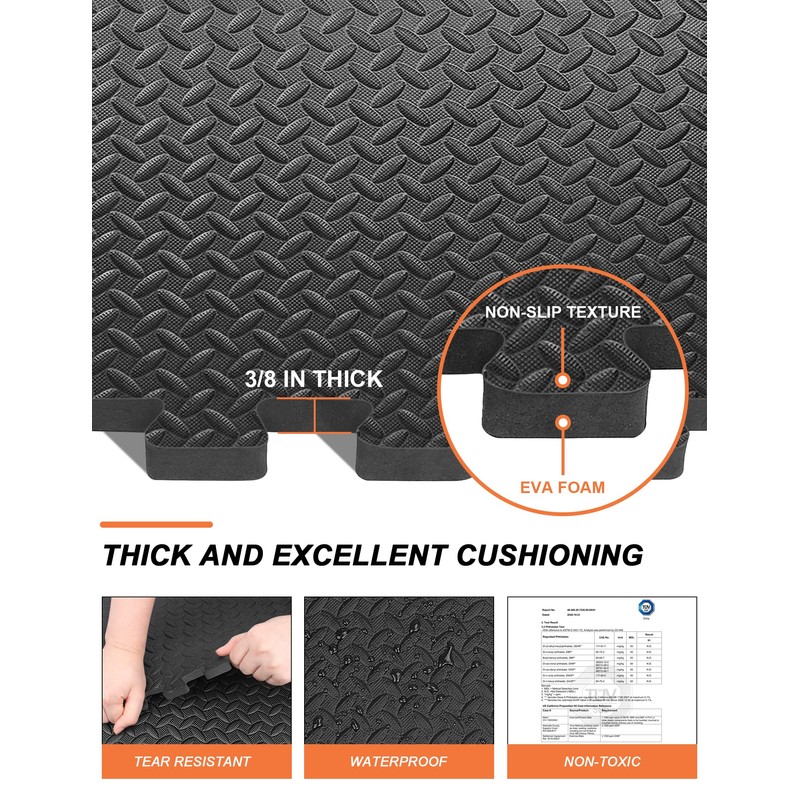 - Safe and Premium Quality Gym Mat: Made of high-density EVA foam for long-lasting and reliable performance. Exercise mats conform to the safety requirements of US CPSIA, ASTM and EU EN71-1-2-3. innhom EVA floor mats are durable, long-lasting and support you a better cushion while protecting floors.