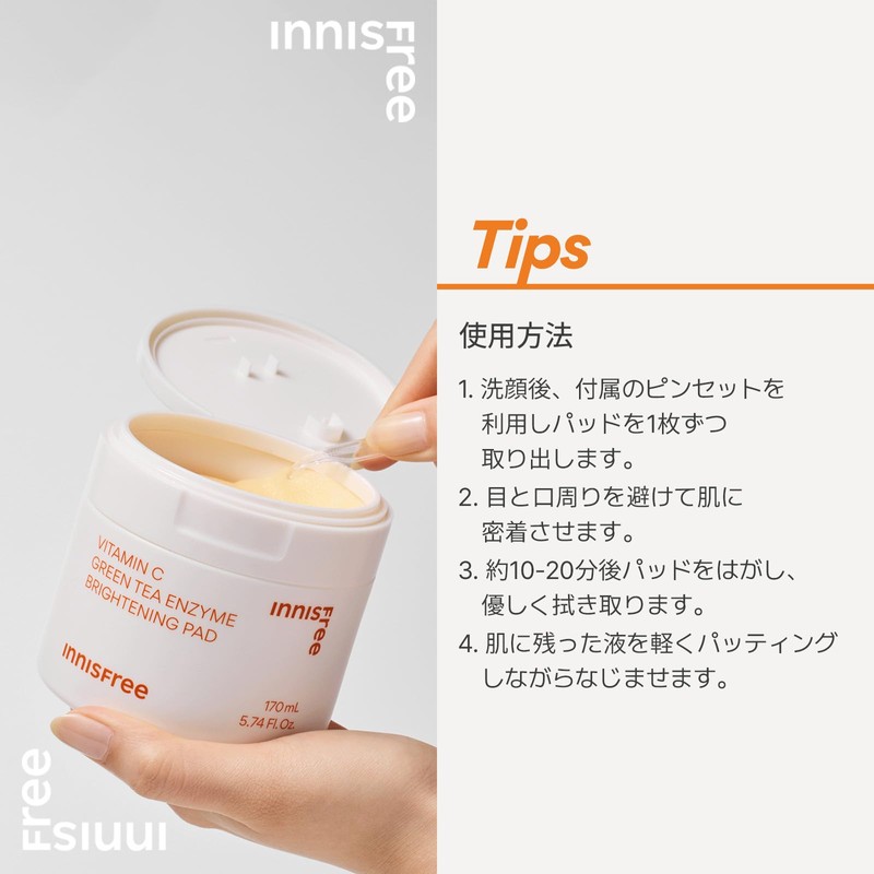 innisfree Vitamin C Green Tea Enzyme Bright Pad 60ea - Genuine Vitamin C Serum, Moisturizing, Hypoallergenic, Sensitive Skin..