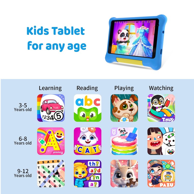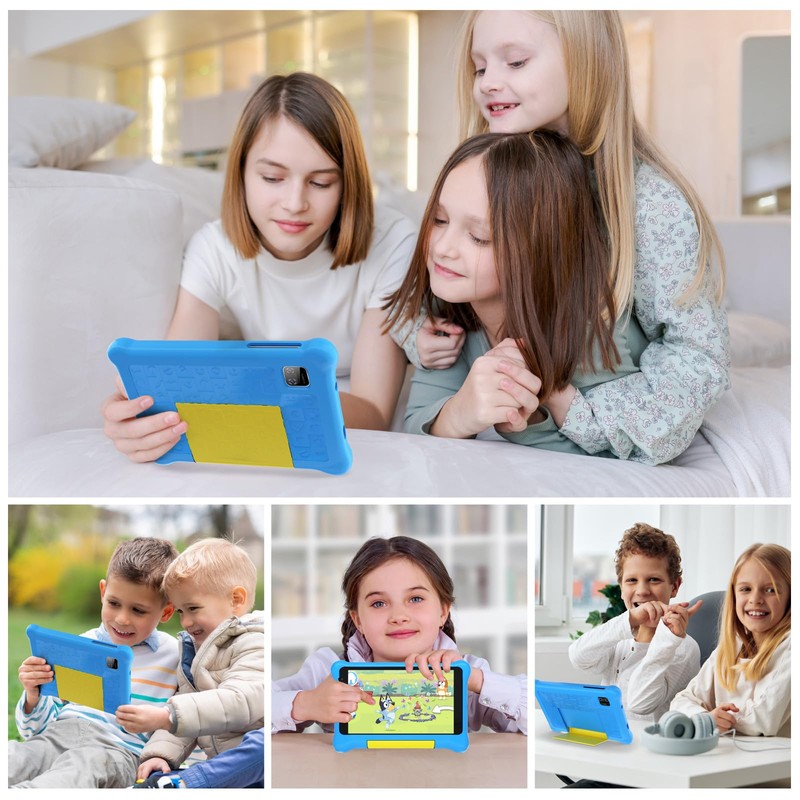 - ❥🎨【Kids Tablet with Shockproof Case】The kids tablet comes with a durable kidproof case that protects the tablet from scratches, dirt and bumps, drops and dust. Don't worry that your kids will broke the kids tablet easily. Built-in stand on the back allow your kids don't need to hold the tablet all the time while they study, watch, and play, convenient for carrying anywhere.