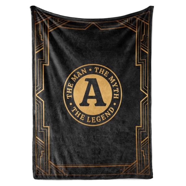 InnoBeta Initial Birthday Gifts for Men, Birthday Gifts for Him, The Man The Myth The Legend Gift Ideas for Dad, Grandpa, Uncle- 300gsm Flannel Blanket- 50"x 65"A