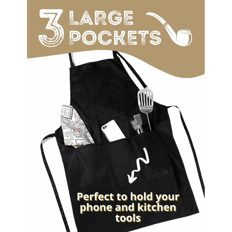 - 【User Friendly】Our aprons feature three big, deep pockets in the front, which are perfect for holding your cell phone, pens, notebook, grill accessories, and other important items. Convenient for you to store any gadgets.