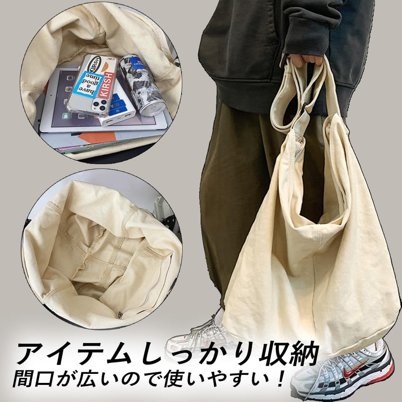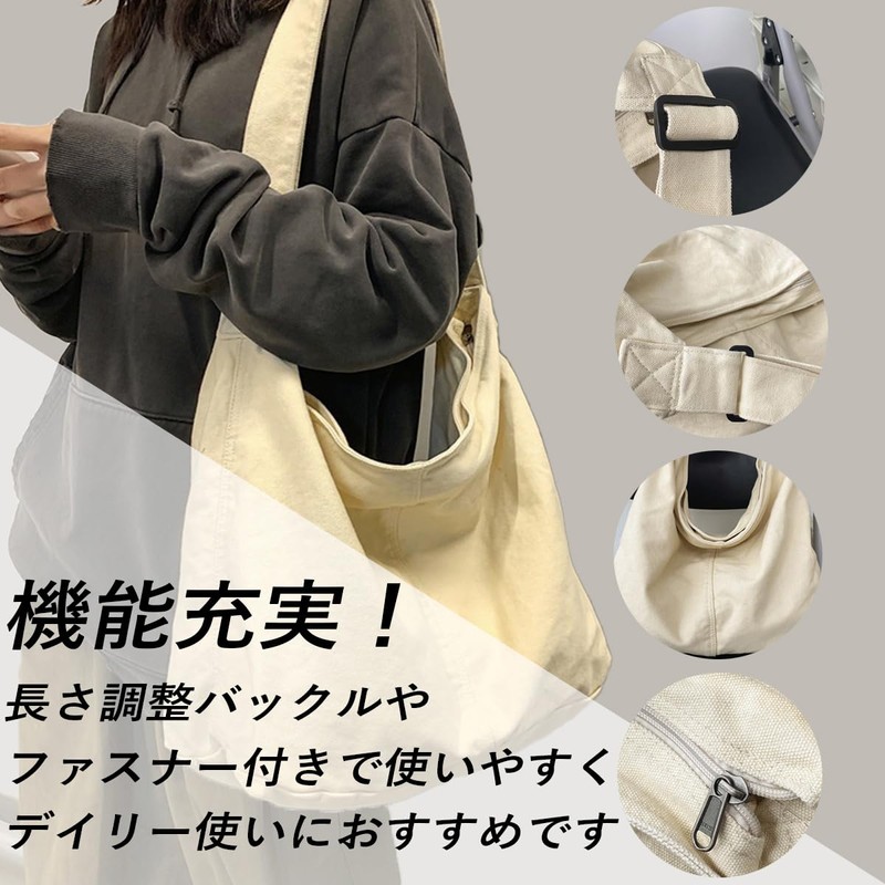 INNOCRIE Shoulder Bag, Canvas Bag, Large Capacity, A4 Storage, Canvas Tote, Crossbody Hanging, Shoulder Bag, Men's, Women's, Commuting to Work or School, armygre