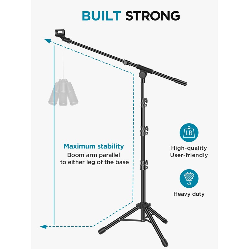 - Steady Tripod Stand: The high-quality thickened steel poles enhance the exceptional stability and durability of this mic stand. Compared to other lighter stands that are easy to tip over, our mic tripod stand is as heavy as 4.0lbs, serving indoor and outdoor use.