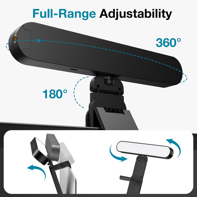 • 360° Adjustable & Effortless Setup: The rotatable design allows 360° horizontal and 180° vertical adjustments, providing optimal lighting angles for any setup. Installs in under 1 minute and works in both horizontal and vertical orientations, making the video conference light ideal for desktops, laptops, or monitors.