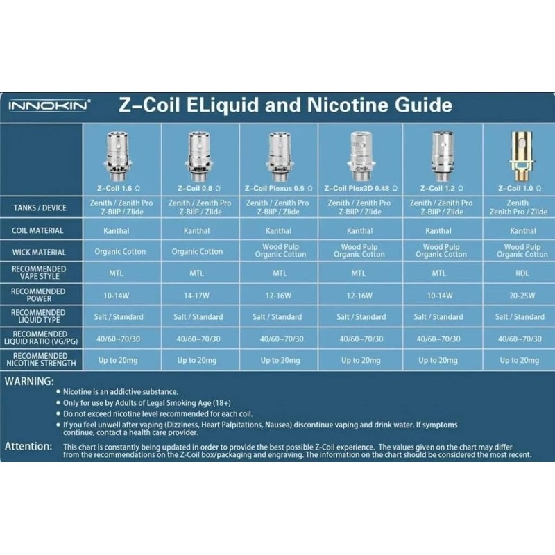 - Suitable for: Innokin Z Biip Starter E-Cigarette Set, Innokin Z Biip Pod, Innokin Cool Fire Mini with Zenith D22 E-Cigarette Set, Innokin Kroma A Zenith E-Cigarette Set, Innokin Zlide Clearomizer Set, Innokin Zenith Clearomizer Set