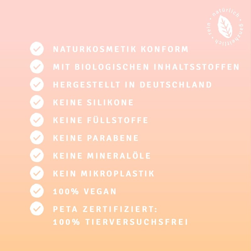 • FREI VON: Mineralölen, Silikonen, Parabenen und austrocknenden Alkoholen und Mirkoplatik.