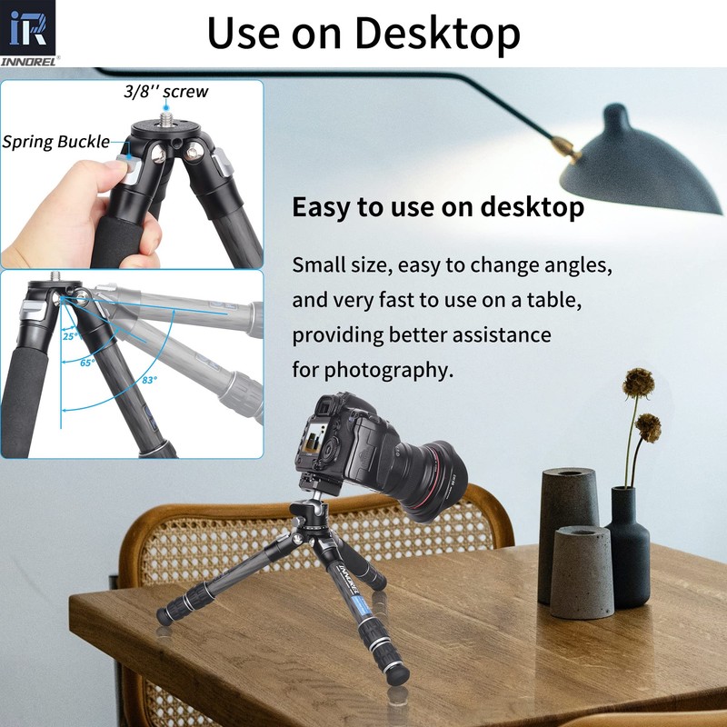 - 【3 Angles Adjustable】The camera tripod can be adjusted to three angles (7°/25°/65°) conveniently. With the 3-section tubes, working height can range from 2.2in/5.5cm to 16.5in/42cm, achieving low position, macro shooting or other shooting requirements easily.
