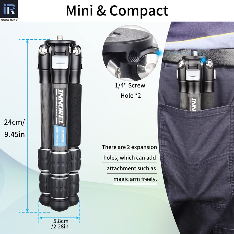 INNOREL 10-Layer Carbon Fiber Mini Tripod CT223C Desktop Tripod with Low Position Macro Shooting, Tabletop Camera Tripod, Compact Lightweight Portable for Digital DSLR, DV Video, Max Load 22lb/10kg