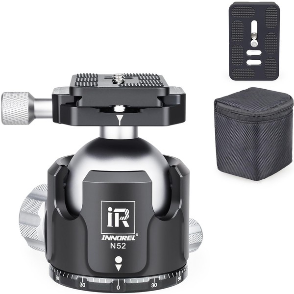 INNOREL N52 Ball Head Tripod Head Low Profile Ball Head 360 Degree Rotatable Diameter 52 mm Max. Load 30 kg for DSLR Long Focus Tripod Monopod Alloy Ball Head with Bag