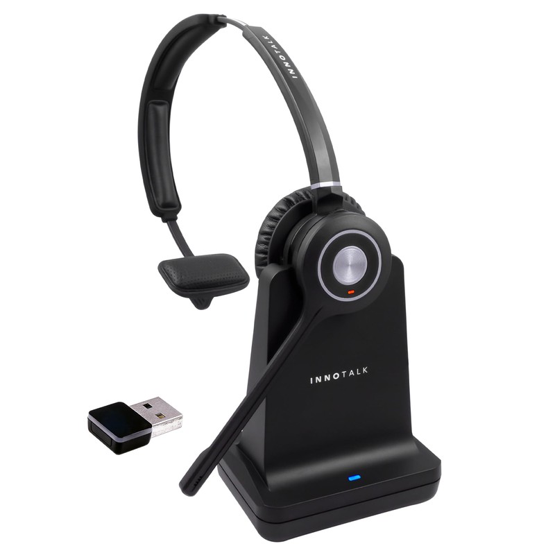 INNOTALK - Mono Wireless Bluetooth Phone Headset+USB-A Dongle & Charging Stand, Office Phone Bluetooth Compatible with Bluetooth Featured Devices, Various PC Phones, and Phones with a USB-A Jack