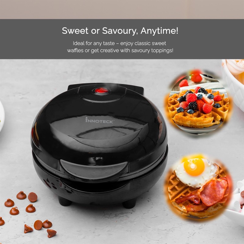 Innoteck Kitchen Pro 550W Mini Waffle Maker – Black Classic Waffle Plate, PFOA-Free Non-Stick Heating, Quick Cooking, Cool-Touch Handle – Ideal for Kids & Breakfasts