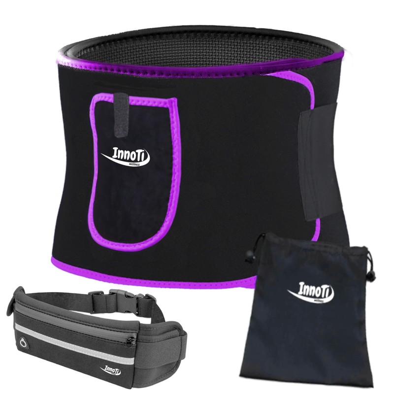 - Practical and an absolute novelty: the slimming belt has a practical built-in pocket in which your mobile phone, cards, documents or other items can be stored, so that your hands are completely free. As a novelty, we have also attached a safety lock to the bag, so that your items are even safer when storing with this slimming belt from InnoTi