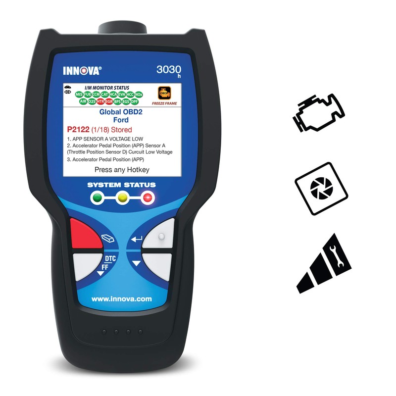 Innova 3030 Herramienta de diagnóstico/lector de código con ABS para vehículos OBD2, Color Screen with DTC Severity, Regular