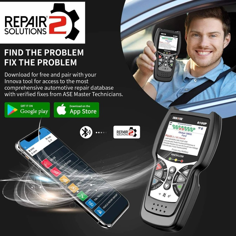 Repair Solutions 2 APPRepair Solutions 2, Fix the Problem Download for free(App store & Google Play) and pair with your Innova tool for access to the most comprehensive automotive repair database with verified fixes from ASE Master Technicians. Repair Solutions 2 to Inspect. Verify. Fix. Get the most out of your Innova 6100P car scanner. Packed with professional-grade features and benefits, Innova new range of tools come with Bluetooth and WIFI technology and pair seamlessly with the all-new RepairSolutions2 diagnostic app. |