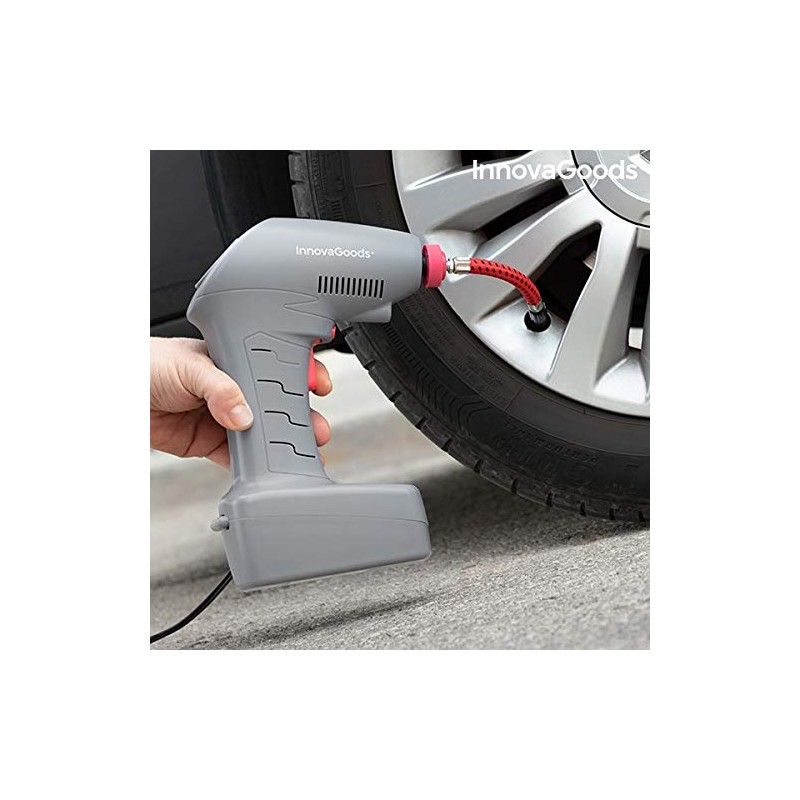 - 🚗 Der tragbare Luftkompressor von InnovaGoods leuchtet mit seiner integrierten LED Ihren Weg – ideal für nächtliche Notfälle. Mit seinem kompakten Design passt er in jedes Fahrzeug und ist ein Muss für Autoreifen, Fahrräder und Motorräder