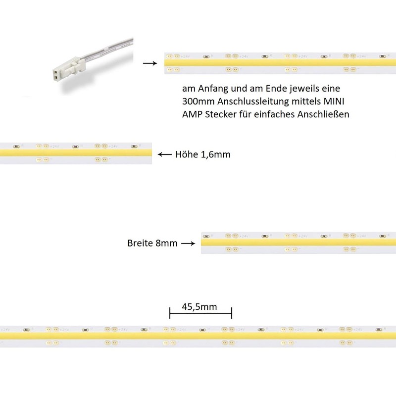 Special features: separation point: 45.5 mm, length tolerance 1% | max. Flex tape length per feed: 5 m. Clean and degrease the surface before sticking. Do not peel off again! Cooling profile required. Homogoene Lichtlinie durch neue COB Technologie