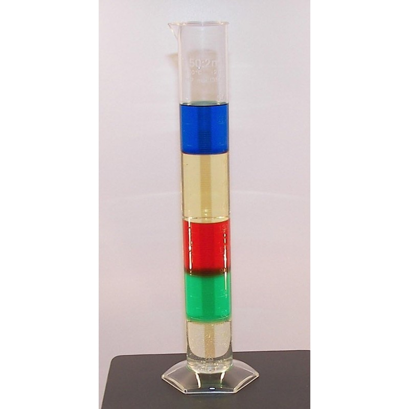 • Activity for combining differing densities of liquids to form density gradient resulting in layered, multi-colored column (included)