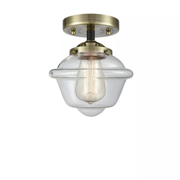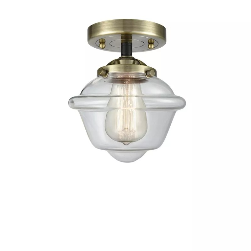 Innovations SM Oxford 7.5" Semi-Flush, Amber/BK Brass/School - 284-1C-BAB-G532 The Small Oxford 1 Light Semi-Flush Mount is part of the Nouveau Collection.- Part of the Nouveau Collection