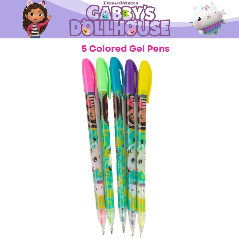 - COMES WITH GABBY DOLLHOUSE STICKERS AND COLORED PENS - Featuring their favorite characters, each set includes a clear zip pouch pencil case that fits inside the larger one, 5 colored gel pens, and a sticker sheet.