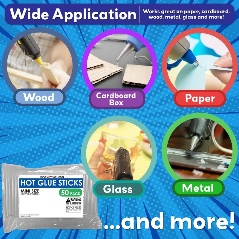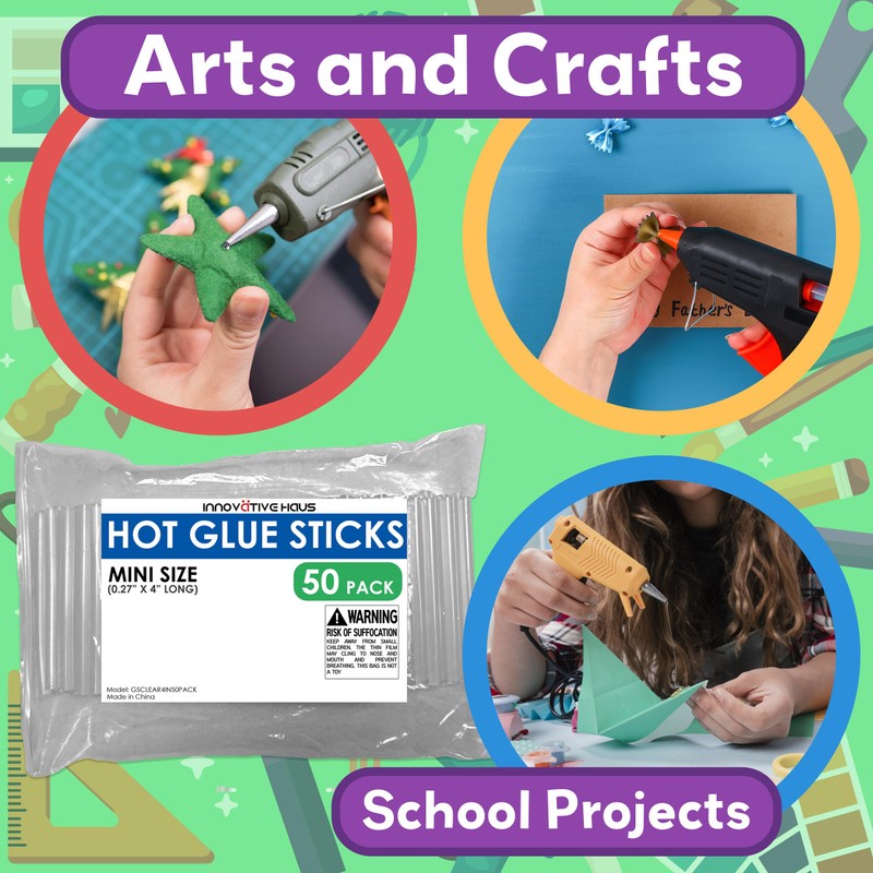 Innovative Haus Mini Hot Glue Sticks (50 Pack) - Fits Mini Glue Guns, 4" x 0.27" - Craft, Bond, Create on Wood, Metal, Glass and More - Transparent, Strong and Quick-Drying