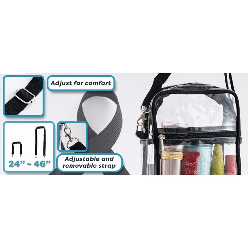 - Stadium approved: Compliant with stadium policies, this clear crossbody bag measures approximately 9" x 6.75" x 2.75", fitting within the 12" x 6" x 12" size limit for hassle-free entry at events